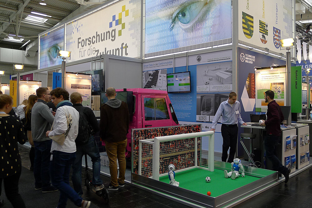 Häufig präsentieren wir uns zusammen mit anderen Hochschulen aus Mitteldeutschland am Gemeinschaftsstand Forschung für die Zukunft.