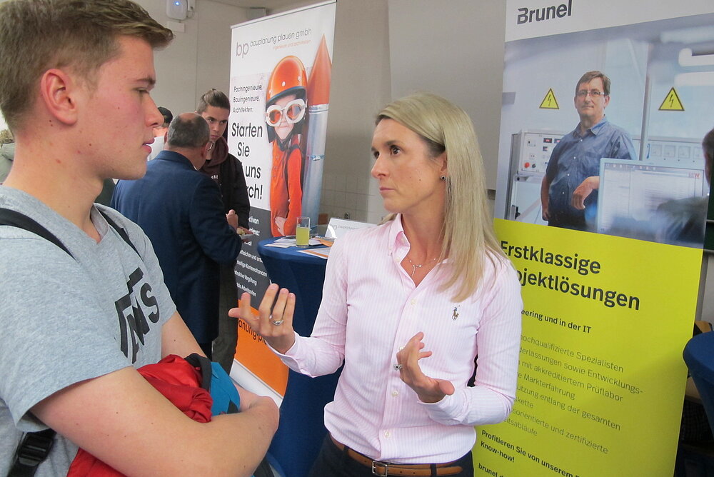 Gerade Letzteres war für Lisa (19) interessant, die sich im dritten Semester befindet. Die Veranstaltung bot ihr einen echten Mehrwert, „sie bringt mir richtig was“. Kommilitone Lukas (22) ist bereits ein Jahr weiter im Studium, muss sich „nun langsam Gedanken machen, wie es danach weitergeht. Der heutige Tag hat mich motiviert, in die Spur zu gehen“. Seine Spezialisierung werde er wahrscheinlich auf den Tiefbau legen, drei Firmen hat er sich an diesem Nachmittag ausgesucht, möchte mit den Vertretern ins Gespräch kommen, um deren Portfolio zu ergründen.