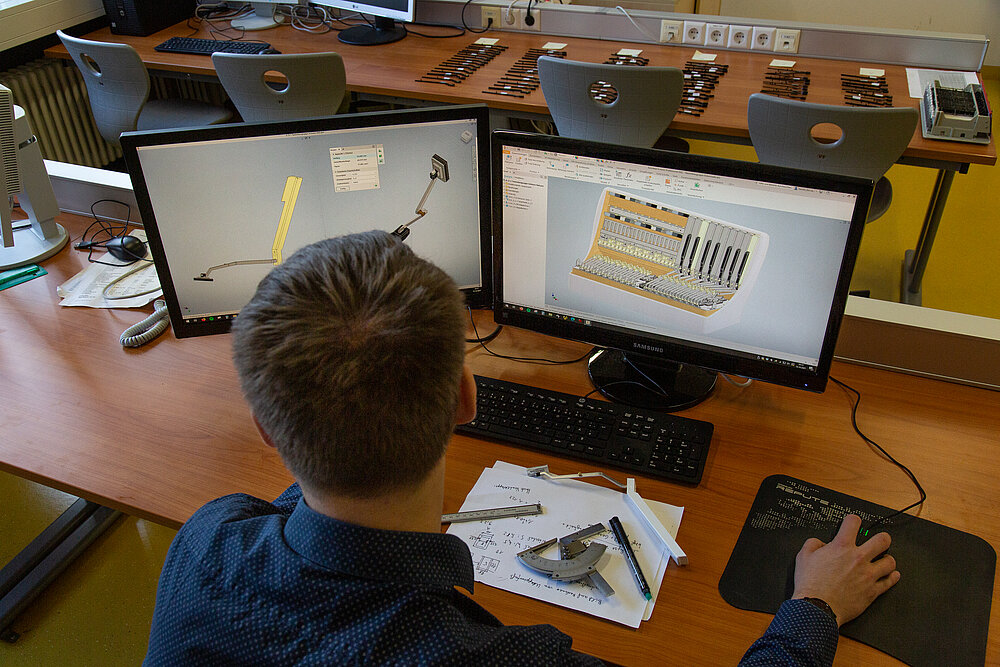 Dabei hilft ihnen Johannes Zentner, Professor für Konstruktion an der HTWK Leipzig. Gemeinsam mit den wissenschaftlichen Mitarbeitern Max Böhme und Moritz Leo Neubert leitet Zentner im Entwicklungssprojekt „Reverse Engineering“ dreidimensionale Modelle aus fertigen Instrumenten ab. Daraus erstellt er Fertigungsunterlagen und digitale Animationen, die Akkordeon-Monteuren dabei helfen sollen, die Instrumente zu bauen.