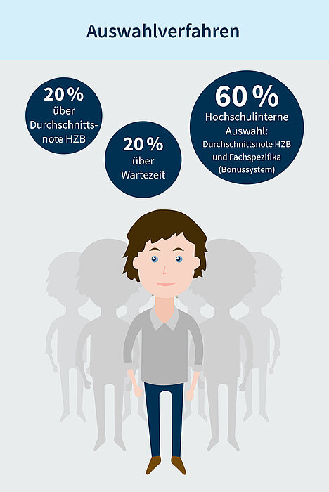 Die hier aufgeführten Bonuskriterien gelten für die Bewerbung zum Wintersemester 2025/26. Rechtsgrundlage ist die aktuell geltende Auswahlordnung (Ordnung für das hochschulinterne Auswahlverfahren grundständiger Studiengänge), nachzulesen unter Rechtsgrundlagen.