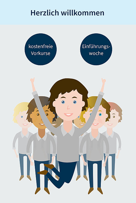Für einen erfolgreichen Studieneinstieg sollten Sie den Stoff des gymnasialen Grundkurses Mathematik sicher beherrschen. Ist das nicht so? Dann erleichtern Sie sich Ihren Studienstart: Frischen Sie Ihre Kenntnisse auf oder schließen Sie Wissenslücken. Nutzen Sie unsere kostenfreien Vorkurse unmittelbar vor Studienbeginn.