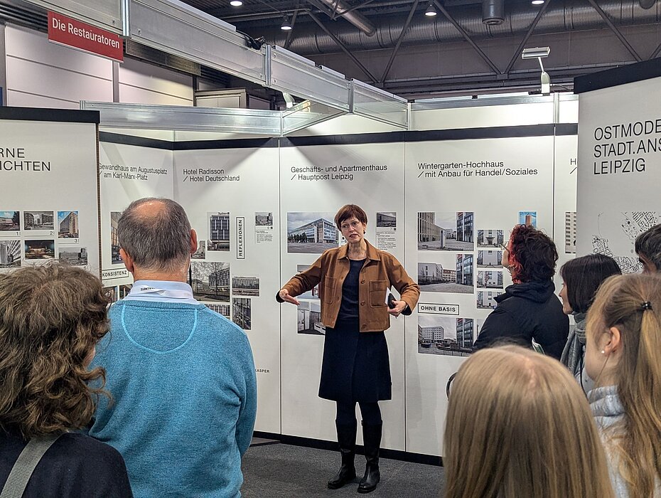 „Ostmoderne Stadt.Ansichten Leipzig“, eine Architekturausstellung der HTWK Leipzig, ist am Stand der Abteilung Denkmalpflege der Stadt Leipzig zu sehen. Prof. Dr. Annette Menting, Professorin für Architekturgeschichte, kuratierte die Gegenüberstellungen von Ansichtskarten aus den 1960er bis 1980erJahren mit aktuellen Fotografien von Louis Volkmann und von Architekturstudierenden der HTWK Leipzig. Sie zeigen Orte, Räume, Architekturen und Momente des Stadtlebens. Die Arbeiten schließen an das Instagram-Projekt „karten.der.moderne“ des Fotografen Louis Volkmann an und sind in Halle 2, Stand K 42, zu sehen. Täglich 11 Uhr laden die Abteilung Denkmalpflege, der Architektur-Studiengang der HTWK Leipzig sowie die Leipziger Denkmalstiftung zu geführten Ausstellungsrundgängen ein.