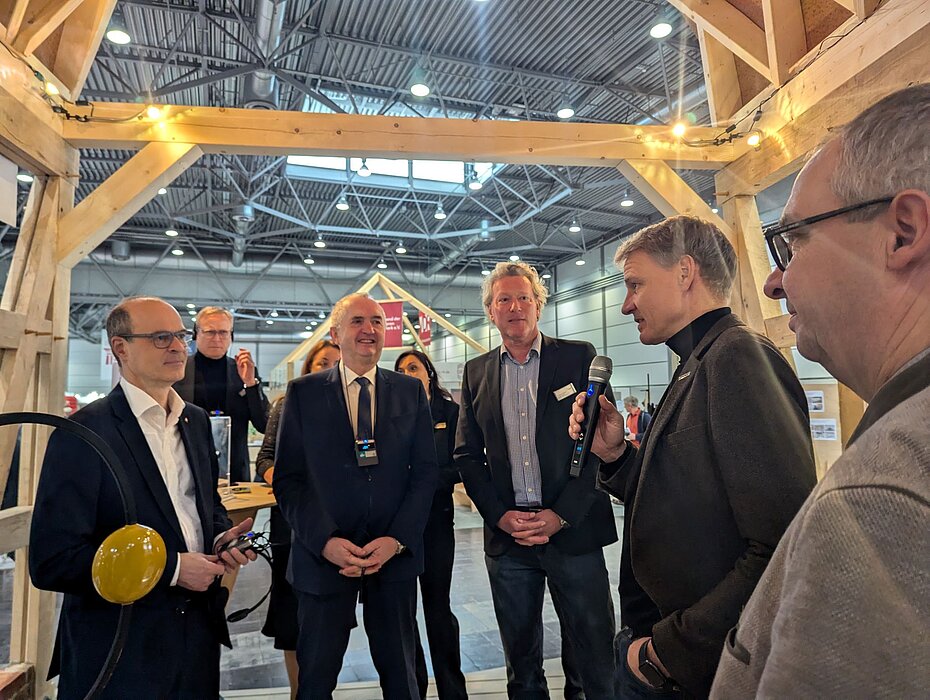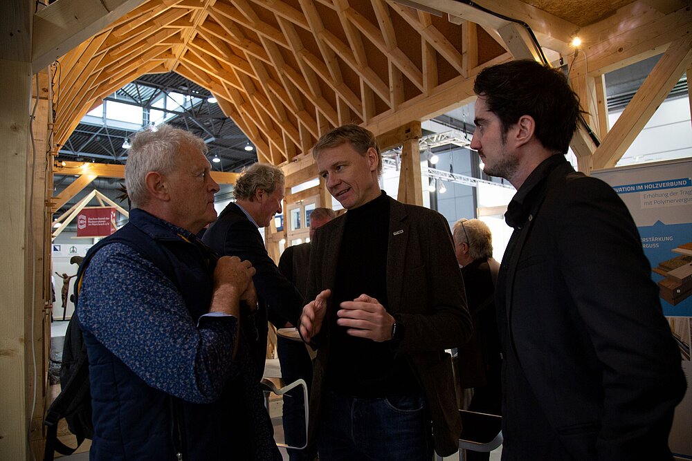 Ebenso zeigt die interdisziplinäre Forschungsgruppe FLEX Einblicke in aktuelle Forschungsprojekte zur Anwendung von Augmented Reality in der Montagehalle, zum Feuchte-Monitoring im Holzbau sowie zu modularen, hölzernen E-Tankstellen.