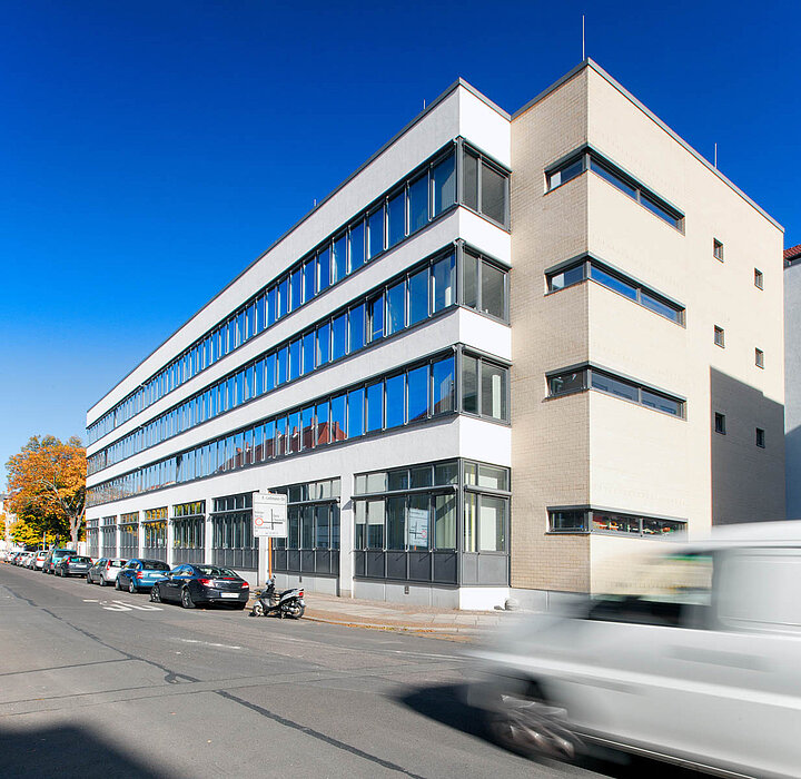 - Bis 1975 sollte die Hochschule für Bauwesen vom Sitz im heutigen Geutebrück-Bau aus gesehen nach Westen wachsen, den Hügel hinunter bis zur Windscheidstraße. Zielzahl Bau-Studierende: 2.500.