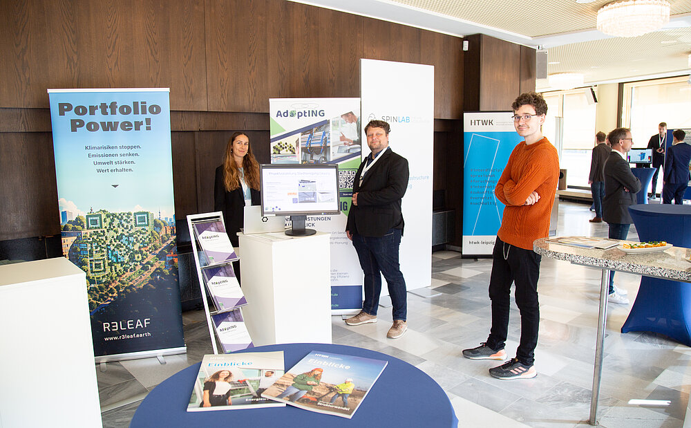 Auch die Start-ups AdaptIng und R3leaf, die von der HTWK-Gründungsberatung Startbahn 13 unterstützt wurden oder werden, stellten sich am Stand vor.