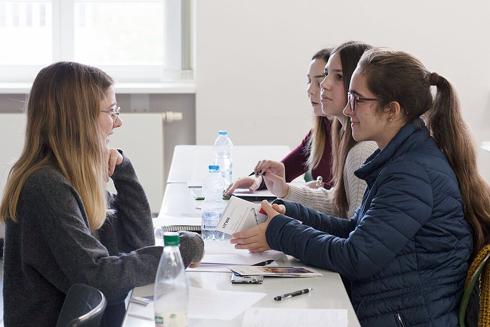 „Auch in diesem Jahr konnten sie bei Interesse neben anderen Angeboten Vorlesungen besuchen“, berichtet Christin Flux, Studifit-Mitarbeiterin im Bereich Studienorientierung. Sie ergänzt: „Medientechnik und International Management waren diesmal besonders nachgefragt.“ Die Veranstaltung werde vom Dezernat Studienangelegenheiten organisiert, erzählt Kollegin Claudia Bothe. „Wir als Mitarbeiterinnen von der Studienorientierung wirken mit, unterstützen das Format und haben es mit den Dezernats-Mitarbeitern weiterentwickelt. Zum Beispiel haben wir einen Orientierungs- und Auswertungs-Workshop am Anfang bzw. am Ende der Woche eingeführt, auch das Speeddating mit sechs Studierenden ist 2019 neu hinzugekommen.“ Anne Herrmann, Koordinatorin der Ferienhochschule, ergänzt: „Besonders schön war, dass dieses Jahr erstmals sieben Stipendiatinnen des Goethe-Instituts aus Armenien, Georgien und der Ukraine teilnahmen und die Gelegenheit genutzt haben, Leipzig und das Studienangebot der HTWK kennenzulernen.“