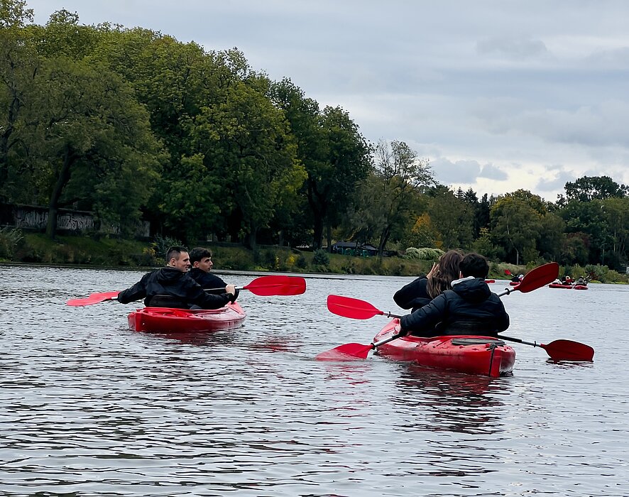 Die Orientierungswoche begann mit einer offiziellen Begrüßung durch das Dezernat Studienangelegenheiten. Im Rahmen vielfältiger Aktivitäten, wie z. B. einer Campusführung, einer Gruppenschulung für E-Learning, einer fachlichen Begrüßung an der jeweiligen Fakultät, einer Bibliotheksführung und einer Kanutour durch Leipzig, konnten die Incomings die HTWK Leipzig und die Stadt Leipzig näher kennenlernen. Auch das Hochschulsportzentrum erkundeten die Studierenden im Rahmen eines Schnuppertrainings. Eine Auftaktveranstaltung zum studienbegleitenden Deutschkurs und ein interkultureller Workshop bereiteten die Austauschstudierenden auf das Studium in Deutschland vor. Unterstützung bei den ersten organisatorischen Schritten erhielten sie von ihren studentischen Buddys, die ihnen tatkräftig zur Seite standen. Die Willkommensparty bot zudem die perfekte Gelegenheit, weiter mit den Buddys in Kontakt zu treten und sich mit anderen internationalen Studierenden zu vernetzen.