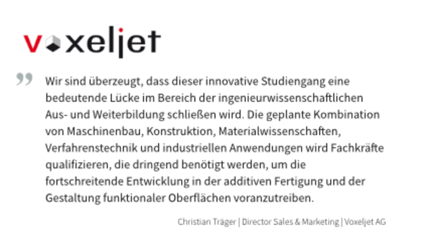 „3D-Druck revolutioniert die Art und Weise, wie Produkte industriell gefertigt werden. Die Transformation vollzieht sich längst und wir möchten kreative Köpfe ausbilden, die diese Veränderung mitgestalten und in diesem hochdynamischen Technologiefeld Innovationen vorantreiben.“ [Prof. Dr. Ingo Reinhold | Professur Beschichtungsprozesse]