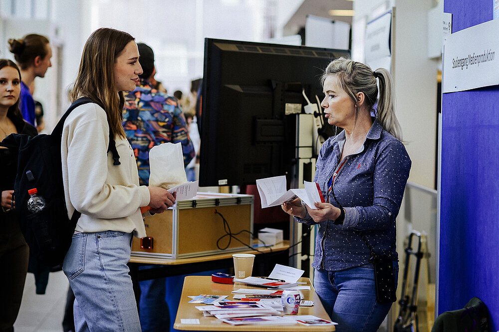 | 12:00 - 14:00 | "Frag die Studis" - offenes Speeddating mit Studierenden - hol dir Infos aus erster Hand zu Studiengängen, Finanzierung, Auslandsaufenthalten und Studienalltag - Kommen und Gehen jederzeit möglich | Foyer/Empore 1. Etage im Nieper-Bau (NI) |
