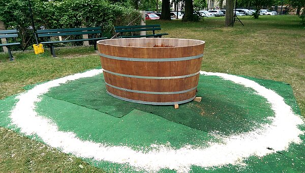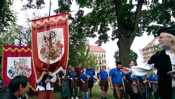 Im Rahmen des Sommerfestes des Studierendenrates dürfen sich Ende Juni 2022 mutige Leipziger Studierende einem Aufnahmeritual unterziehen: Ein großer Bottich, mit Wasser gefüllt, und ein Trunk mit streng geheimen Ingredienzien erwarten sie. Der traditionelle Brauch des Gautschens ist seit der frühen Neuzeit Voraussetzung für die Aufnahme in die Schwarze Zunft.