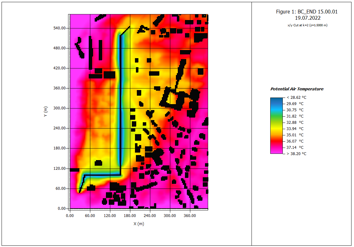 Um dies zu quantifizieren, wurde ein numerisches Mikroklimamodell erstellt und anhand von Messungen vor Ort kalibriert. Die anschließende Anwendung zeigte eine Temperaturminderung von bis zu 15°C in der Nähe der Gradierwerke sowie eine um bis zu 4°C reduzierte Außentemperatur in der angrenzenden Nachbarschaft. Darüber hinaus wurde das Verhältnis zwischen der verdunsteten Wassermenge und der thermischen Behaglichkeit simuliert, um das Potenzial von Wassereinsparungen zu untersuchen. Die Studie ermöglicht Gemeinden mit Gradierwerken damit eine fundierte Entscheidungsfindung, um nicht nur die thermische Behaglichkeit zu verbessern, sondern auch Wassereinsparungen erzielen zu können.