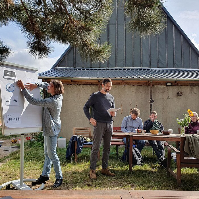 Das schöne Ambiente hat am Vormittag den richtigen Rahmen für einen intensiven Austausch zwischen den vier Teilprojekten geboten. Diskutiert wurden u.a. die Herausforderungen für die Verlängerungszeit des Projektes bis Ende 2025, bei denen sich einige Ähnlichkeiten zwischen den Teilprojekten herauskristallisiert haben. Anschließend blieb noch Zeit, die Stadt Waldheim bei einer Tour auf den Rathausturm und bei einer Wanderung auf den Kreuzfelsen zu erkunden. Gleichzeitig war das die Möglichkeit, den Austausch im Team fortzusetzen.