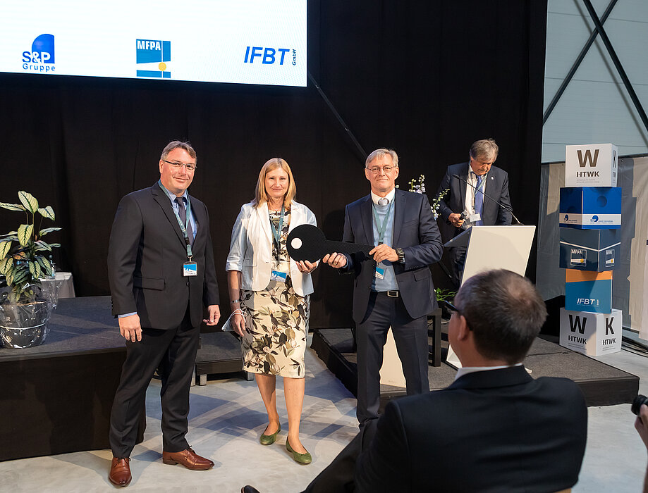 Im Zuge der Unterzeichnung des Kooperationsvertrages wurde auch eine erst im Sommer 2020 fertiggestellte Versuchshalle an die HTWK zur Nutzung übergeben. Zukünftig sollen hier vor allem neue Baustoffe entwickelt, Prototypen getestet und erforscht werden.