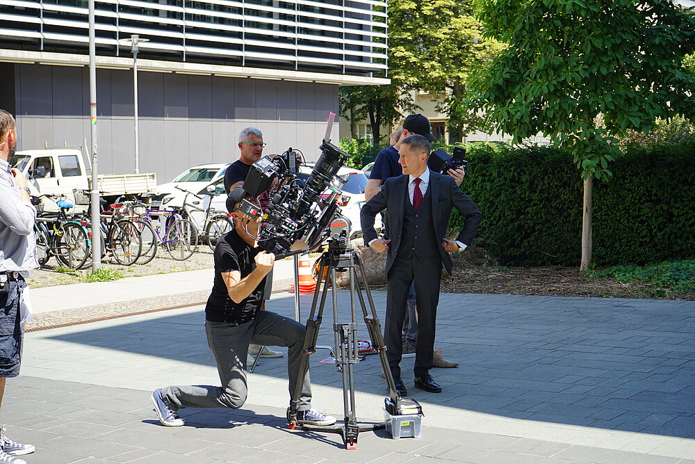 Schenk, bekannt als Urologe der ARD-Erfolgsserie „In aller Freundschaft“, hatte am Freitag, den 13 . Juli einen ganz kurzen Auftritt - bzw. Eintritt - an der HTWK Leipzig. Eine Szene nur - Arzt betritt Galerie - mehr war es nicht an diesem Sommertag in der Gustav-Freytag-Strasse 40A.