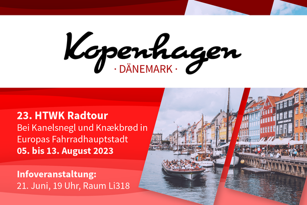 Die 23. HTWK Radtour wird uns dieses Jahr von Leipzig in die dänische Hauptstadt Kopenhagen führen. Eingeladen teilzunehmen sind Studierende, Alumni, Mitarbeitende sowie Freundinnen und Freunde der HTWK Leipzig.