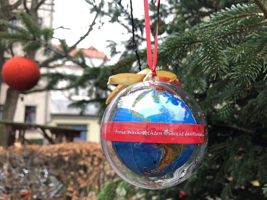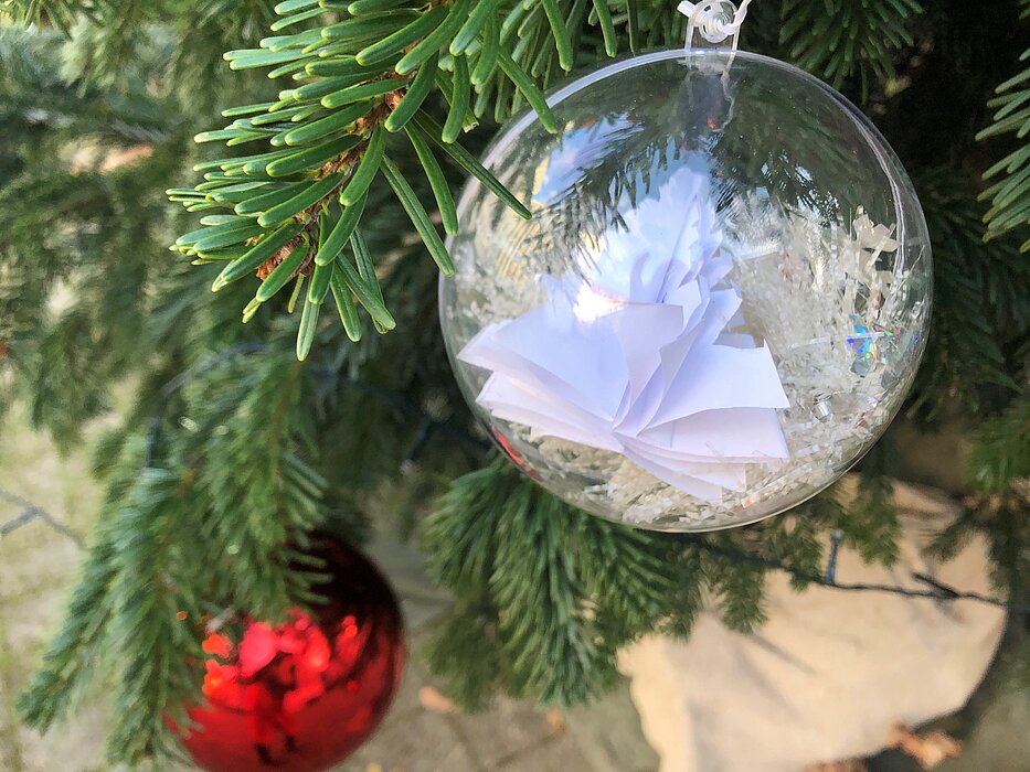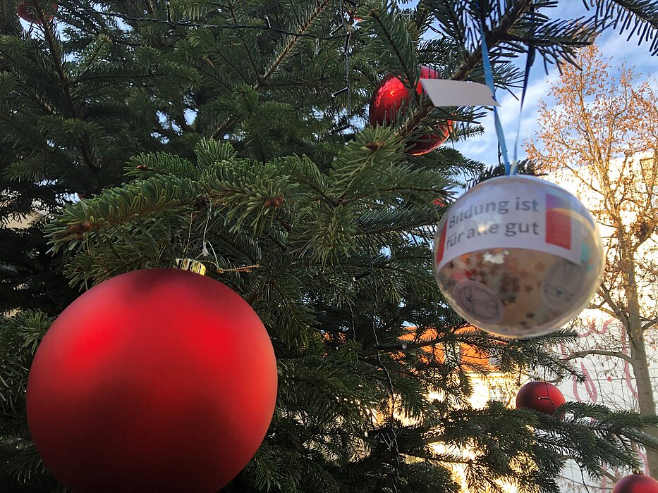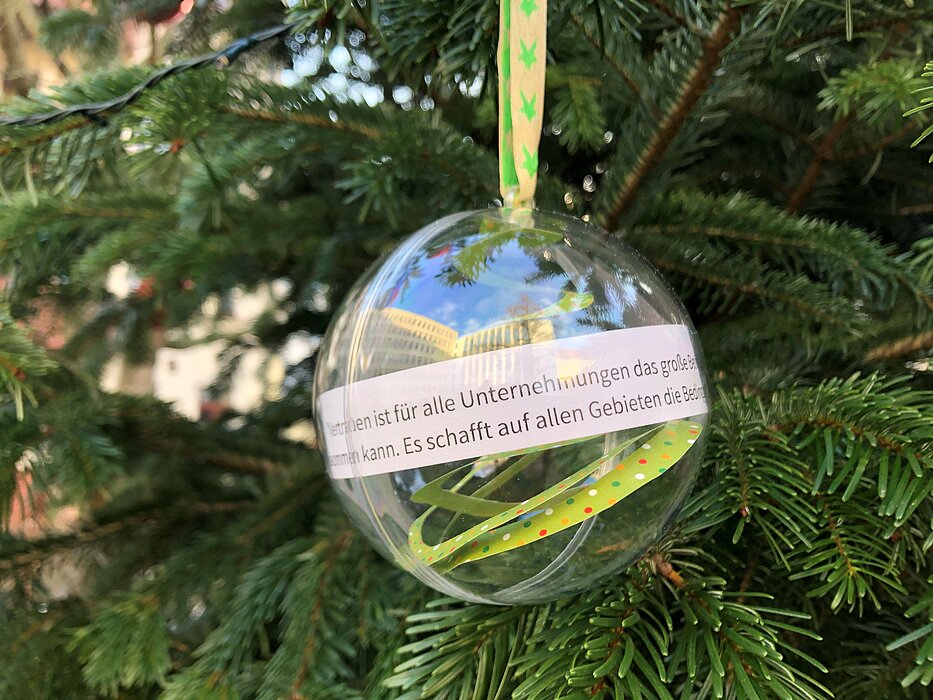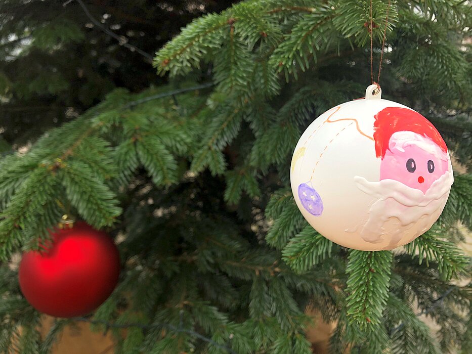 Mehr als 20 selbstgestaltete Weihnachtskugeln schmückten die Nordmanntanne im Geutebrück-Hof