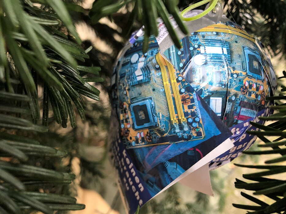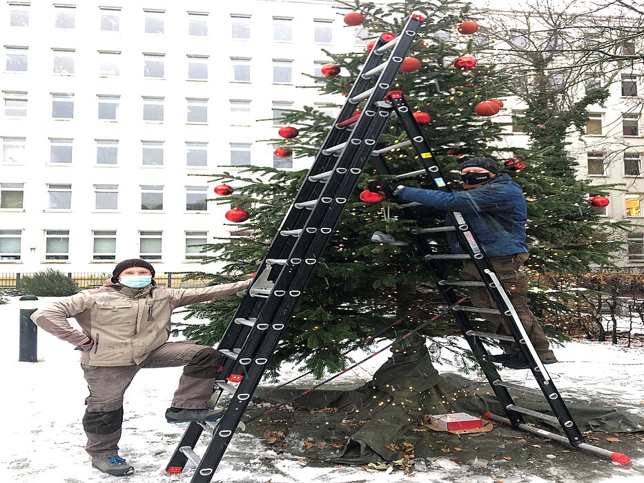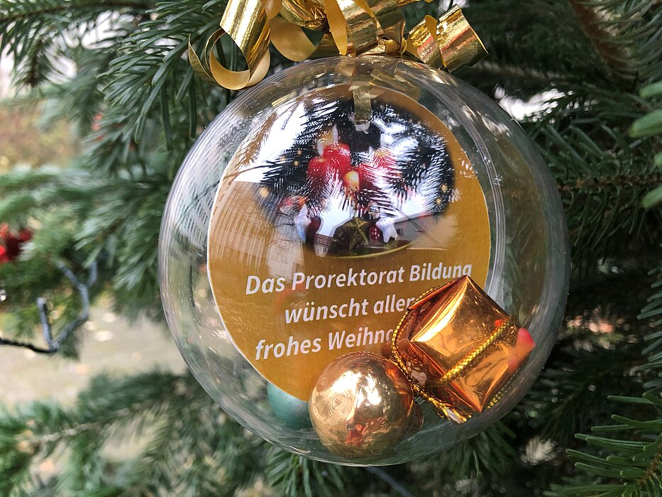Insgesamt rund 25 HTWK-Angehörige bzw. Bereiche waren der Einladung der Hochschulleitung gefolgt und hatten selbstgestaltete Kugeln - und auch andere Deko-Elemente - an den Baum gehängt.