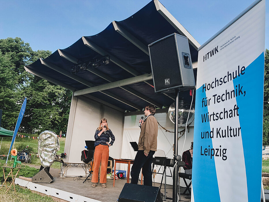 Nach fast zehn Monaten Arbeit war es am 8. Juli endlich soweit - Studierende der Medientechnik konnten bei einem jüdischen Themenabend beim Hörspielsommer 2021 ihre Hörspielreihe "Heimweh" vor Publikum zur Uraufführung bringen. Die Hörspiele sind in Kooperation mit der Leipziger Notenspur und unter Rücksprachen mit der jüdischen Gemeinde in Leipzig entstanden. Unterstützung bekamen die Studierenden auch von Hörspielproduzentin Pauline Kingsbury. Knapp 100 Besucherinnen und Besucher lauschten an diesem sonnigen Abend den vier Hörspielen. Auch intensive Diskussionen wurden in einer moderierten Fragerunde im Anschluss geführt. Abgerundet wurde der Abend mit Gesprächsrunden mit Thomas Schinkel, Musikwissenschaftler, und Svitlana Kapitanova und Musik vom Trio Rozhinkes. Projektleiterin seitens der HTWK war Susann Hommel, die sehr stolz auf die Leistung der Studierenden ist: "In sehr kurzer Zeit haben sie über das Medium Hörspiel einen tollen Zugang zu einem sehr anspruchsvollen Thema gefunden und dazu beigetragen Geschichte und Gegenwart jüdischen Lebens auf kreative Art und Weise sichtbar zu machen. Da kann ich nur den Hut ziehen."