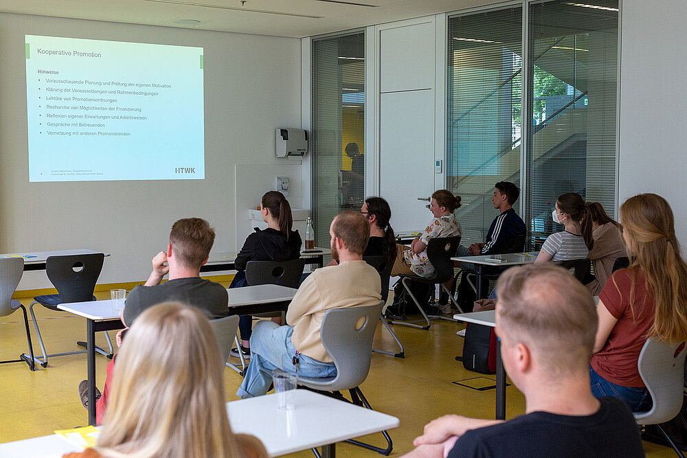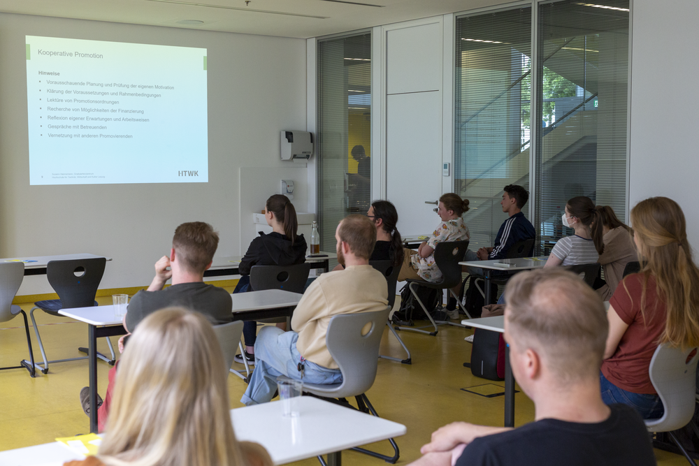 Zum Thema Promotion sowie wissenschaftliche Karriere informierten und vernetzten sich zahlreiche Interessierte am 7. Juni 2023 an der HTWK Leipzig