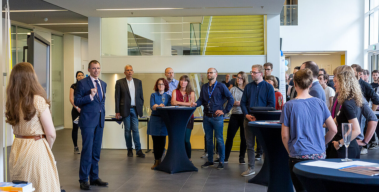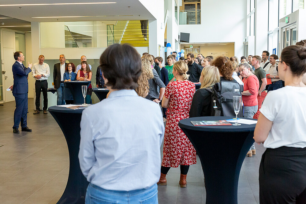 Zum zweiten Mal lud das Graduiertenzentrum Forschungsinteressierte, Nachwuchsforschende sowie Unterstützerinnen und Unterstützer zum „Tag der Nachwuchsforschung“ in den Nieper-Bau ein. Nach der Premiere dieses Tags der Vernetzung und des überfachlichen Austauschs anlässlich des sechsten Geburtstags des GradZ im vergangenen Jahr etablierte sich die Veranstaltung zu einem beliebten Angebot: Studierende, Promotionsinteressierte und wissenschaftlich Mitarbeitende informierten sich auch dieses Jahr wieder am GradZ-Stand, bei der Promovierendenvertretung ProV und im Science Speed Dating über Fragen rund ums Thema Promotion und über Karrieremöglichkeiten in der Forschung.
