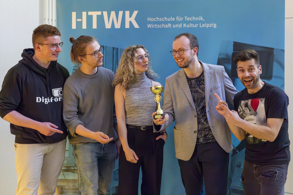Krönender Abschluss des Tags war der Science Slam, bei dem vier Promovierende der HTWK Leipzig kurzweilig und unterhaltsam ihre Forschungsarbeiten präsentierten. Was hat künstliche Intelligenz mit Abwassersystemen zu tun? Wie kann man mit Licht Umweltschäden im Wasser erkennen? Warum braucht es neue Materialien für leistungsfähigere Batterien? Und wie findet man für jedes Haus die richtige Heizung? Diese spannenden Fragen wurden von Nachwuchsforschenden an der HTWK Leipzig beantwortet. Neben dem wissenschaftlichen Inhalt zählten vor allem die Verständlichkeit und der Unterhaltungswert des Vortrags.