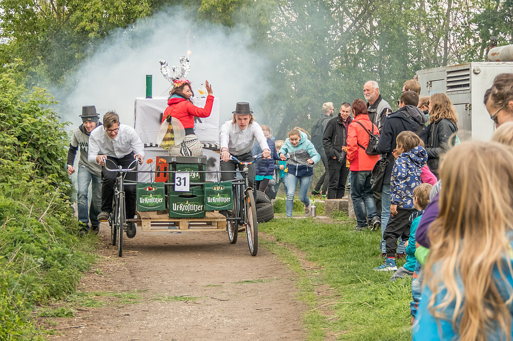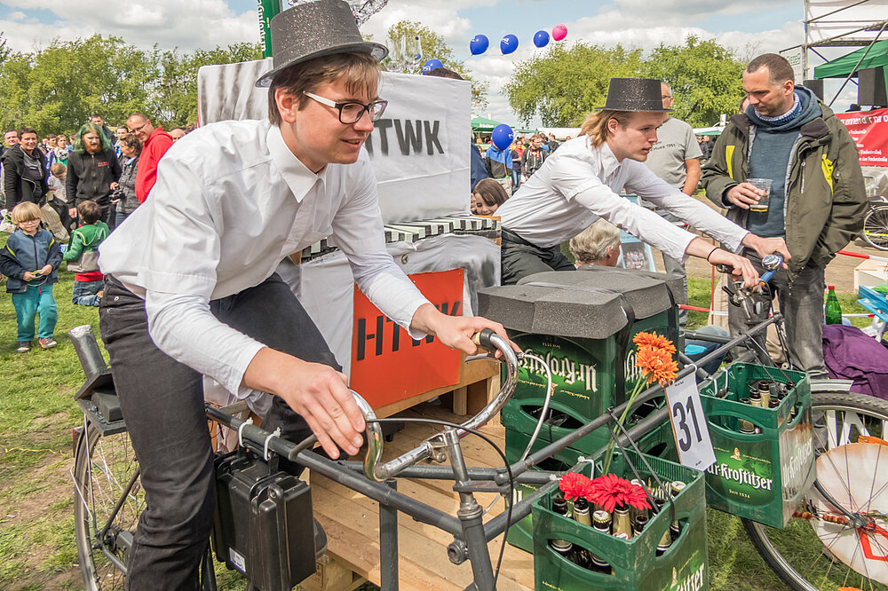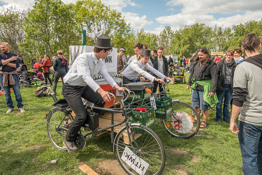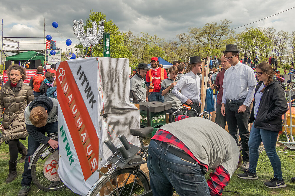 Sie sind wieder da: Nach vier siegreichen Jahren - und insgesamt 14 Jahren Teilnahme - stand das Team der HTWK Leipzig beim diesjährigen Seifenkistenrennen am 5. Mai auf dem Fockeberg erneut auf dem Siegertreppchen. In der Ingenieursliga gelang es der 20-köpfigen interdisziplinären Mannschaft - bestehend aus Studierenden und Mitarbeitern der Fakultät Ingenieurwissenschaften sowie interessierten Schülern aus dem Publikum - eine funktionsfähige und dabei stilvolle Seifenkiste zu kreieren. Obwohl diese innerhalb eines Zeitlimits von vier Stunden gebaut werden musste, hielt der Salonwagen mit Klavier (!) der Fahrt während der Proberunde auf dem Fockeberg-Plateau stand.