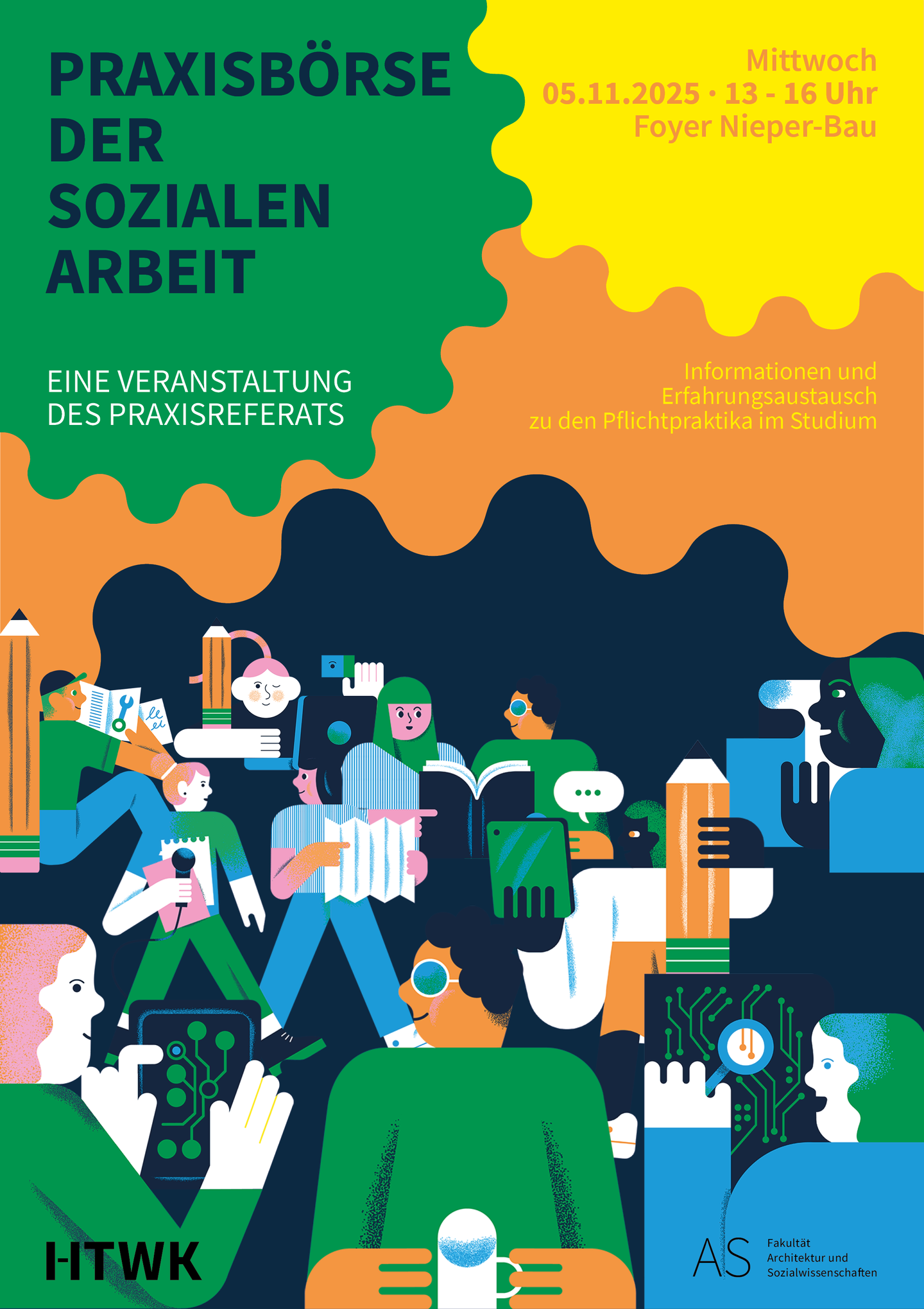 Herzliche Einladung zur Praxisbörse Sozialer Arbeit - etwa 20 Leipziger Einrichtungen aus verschiedenen sozialarbeiterischen Feldern stellen ihr Arbeit und Praktikumsmöglichkeiten für unsere Studierenden im Studiengang Soziale Arbeit vor. Studierende haben die Möglichkeit, direkt mit Ansprechpersonen aus den Einrichtungen in den Austausch für die kommenden Praktika im 2. und 5. Fachsemester zu gehen.