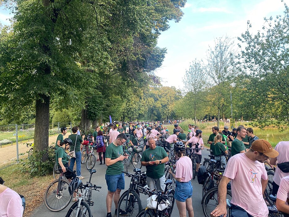 Vom Kleinkind bis hin zur Seniorengruppe war der Kreis der Teilnehmenden bunt gemischt. Ob Zweirad, Dreirad oder Lastenrad: angefangen von den Wegen rund um den Springbrunnen im Clara-Zetkin-Park über das Connewitzer Kreuz bis hin zum Innenstadtring zog sich eine Kette aus Geklingel, Gehupe, Musik und guter Laune. Selbstverständlich war auch in diese, Jahr wieder unsere Hochschule vertreten: 120 Teilnehmende kamen zusammen, um – gekleidet in Team-Shirts – ihren Beitrag zu leisten, denn jeder Kilometer zählt.