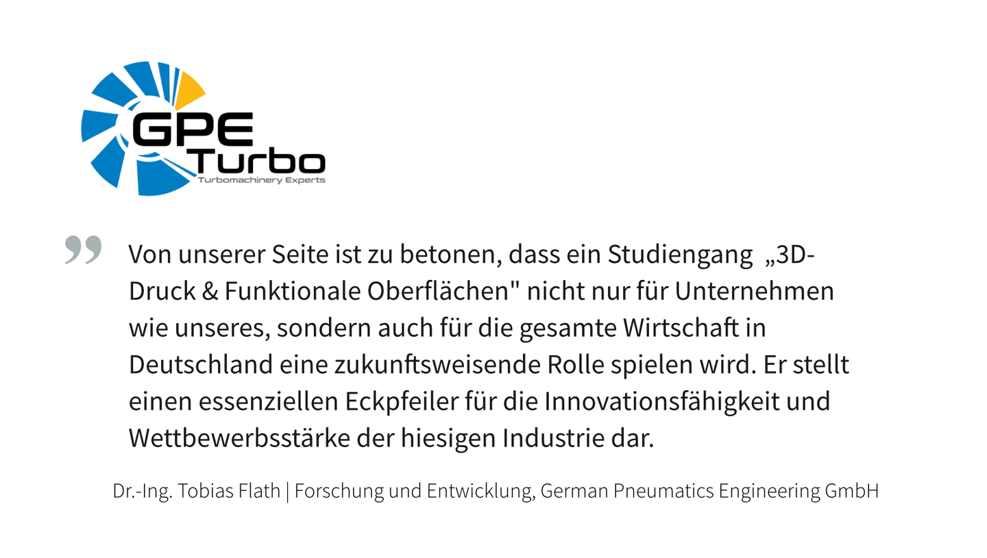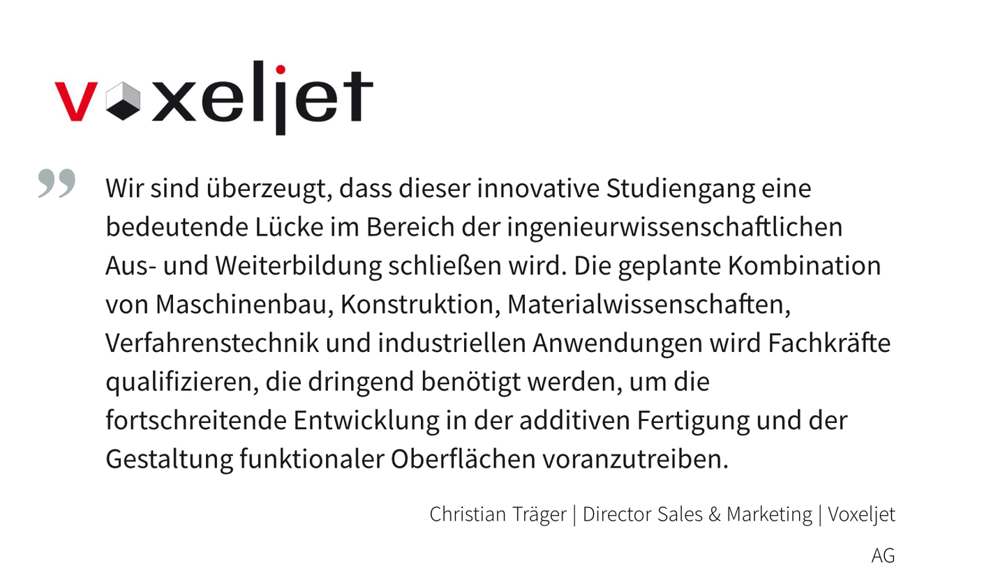 „3D-Druck revolutioniert die Art und Weise, wie Produkte industriell gefertigt werden. Die Transformation vollzieht sich längst und wir möchten kreative Köpfe ausbilden, die diese Veränderung mitgestalten und in diesem hochdynamischen Technologiefeld Innovationen vorantreiben.“ [Prof. Dr. Ingo Reinhold | Professur Beschichtungsprozesse]