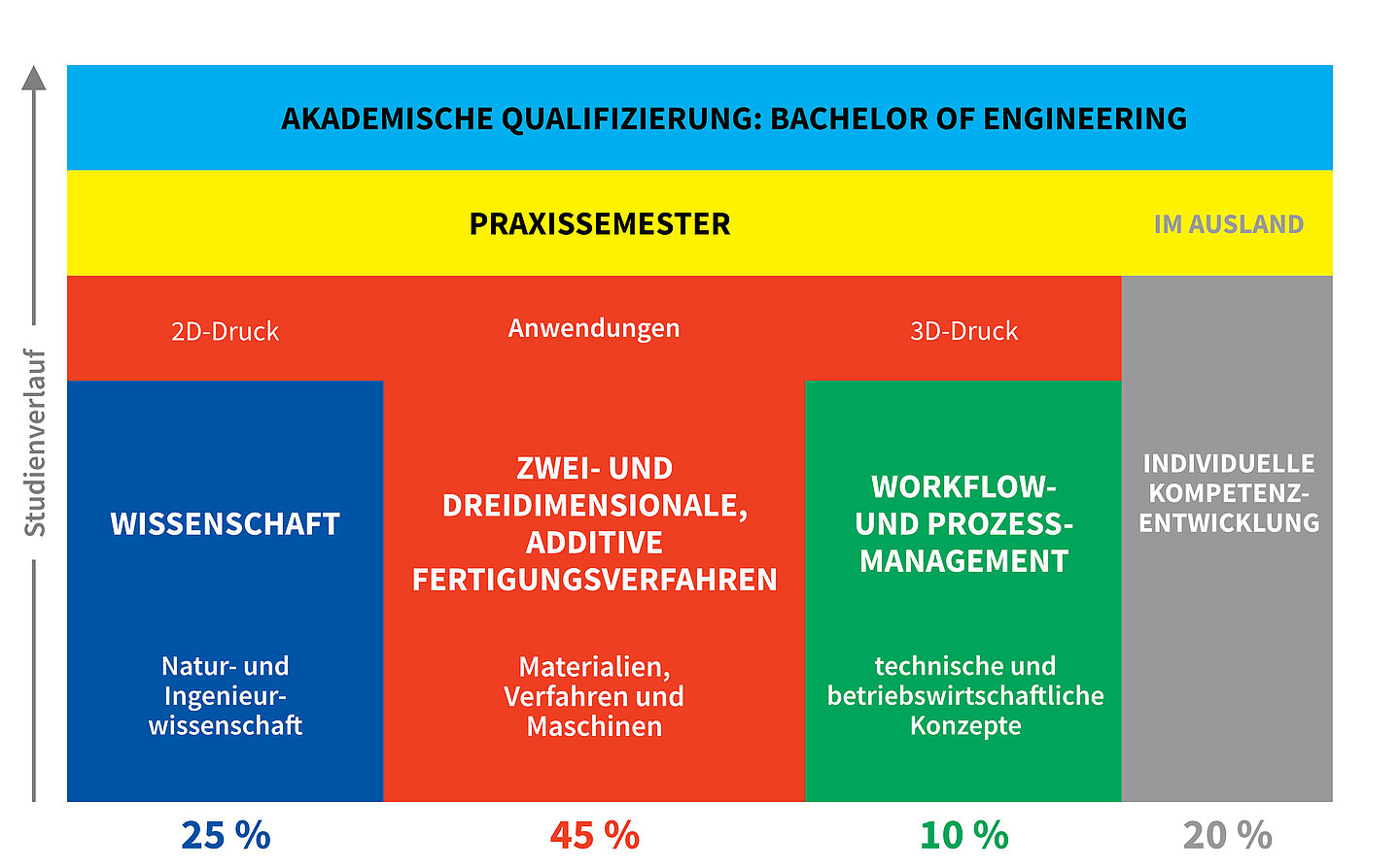 Mit dem Studiengang 3D-Druck & Funktionale Oberflächen erwerben die angehenden Ingenieure und Ingenieurinnen breite Kompetenzen für die Entwicklung, Implementierung und Optimierung von 2D- und 3D-Druckanwendung in der industriellen Fertigung.