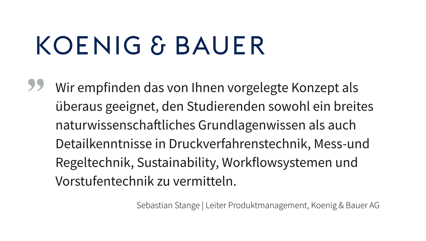 Praktische Experimente verknüpfen die Theorie mit Anwendungen aus dem Druck- und Verpackungsbereich. Damit schaffen die Studierenden eine solide Wissensbasis, um komplexe Prozesse fachgerecht zu verstehen und zu gestalten.
