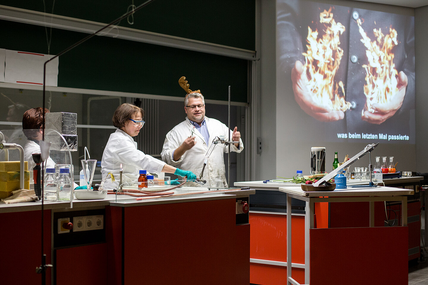 Die Weihnachtsvorlesungen sind inzwischen legendär und ein alljährliches Highlight zum Jahresende. Die besondere Atmosphäre, Experimente aus Physik oder Chemie und sehr viel Humor machen die Vorlesung zu einem besonderen Erlebnis. Im Anschluss sind alle Studierenden zur Weihnachtsfeier des Studiengangs mit Glühwein und Snacks eingeladen.